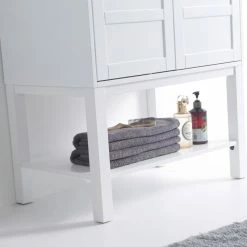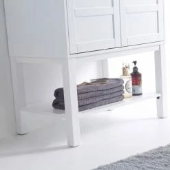 VANITY- Spacious two-door cabinets offer sufficient bathroom storage. They will easily accommodate your essential toiletries and bath items such as soaps, shampoos, shavers, mirrors in addition to your towels.