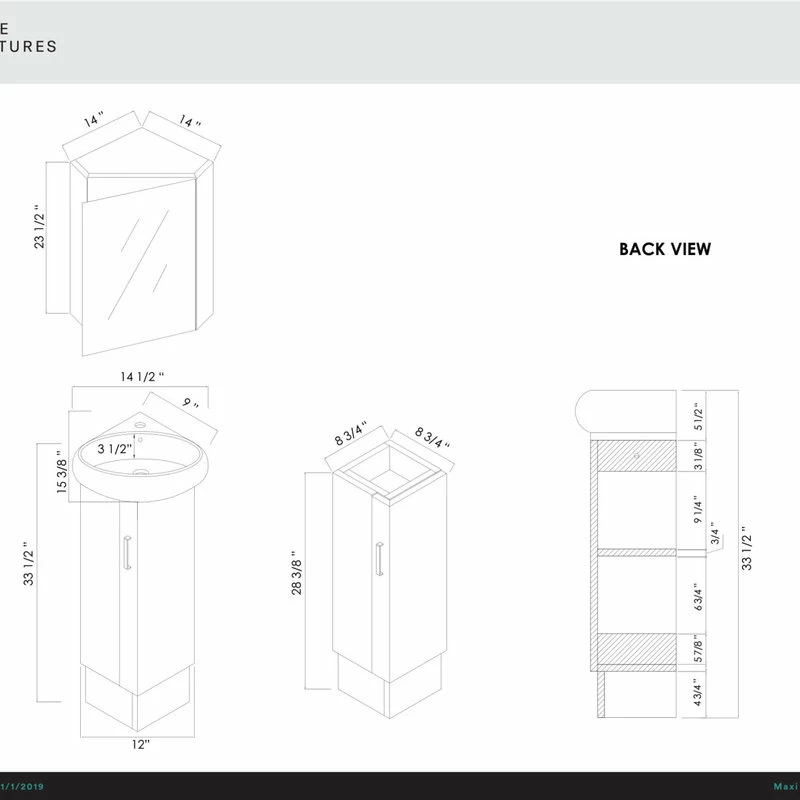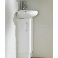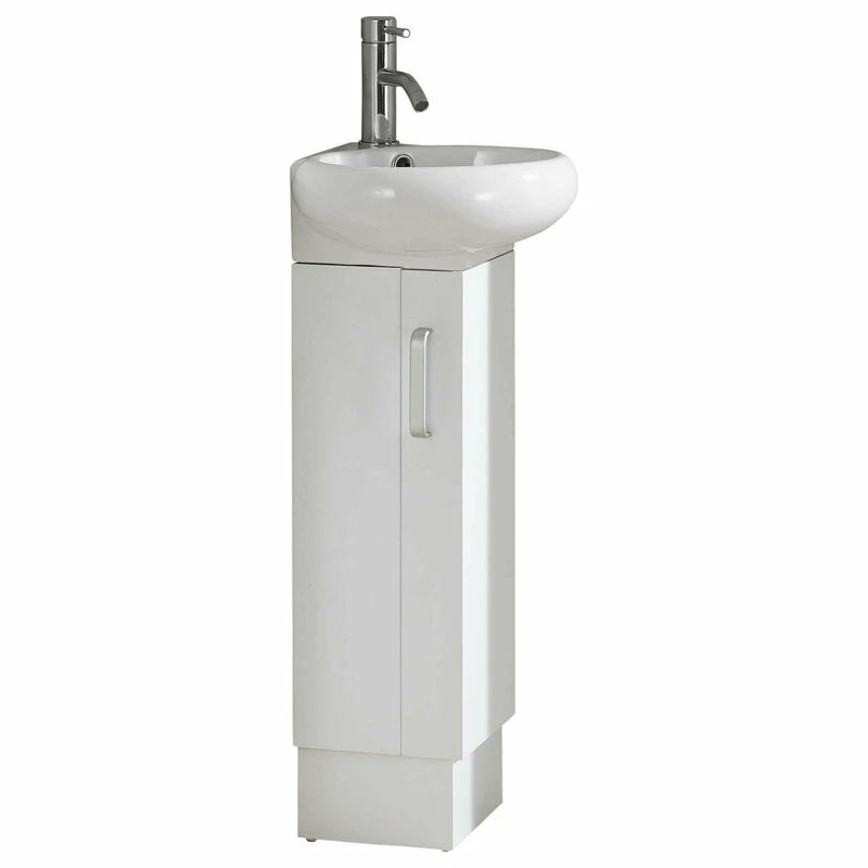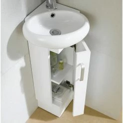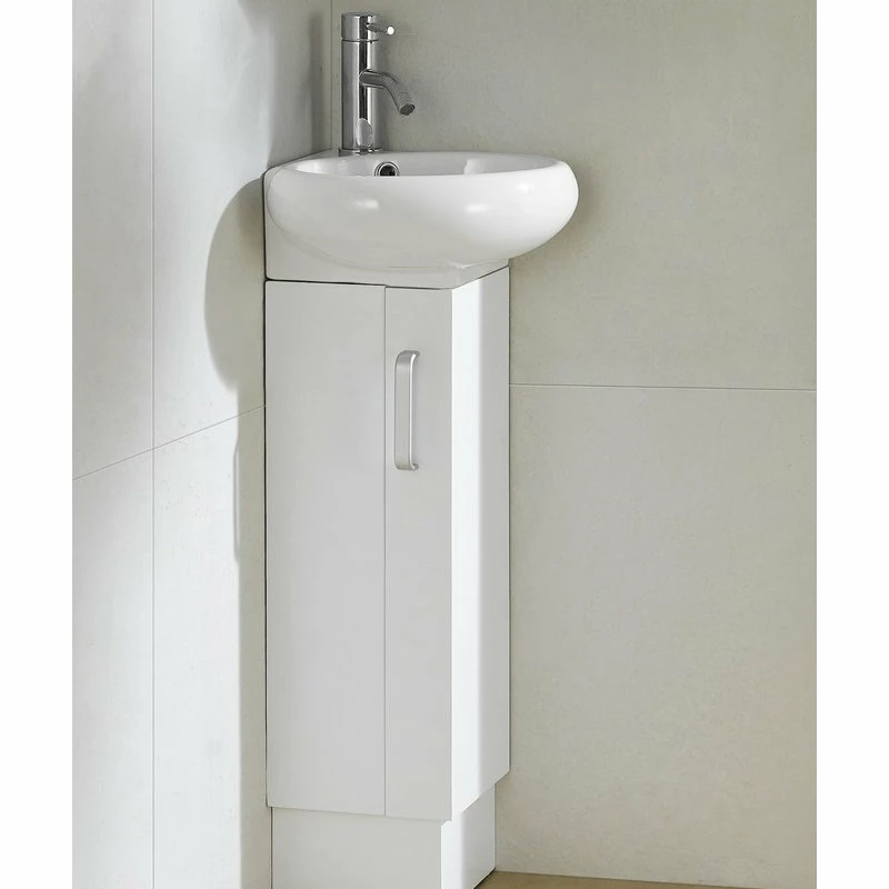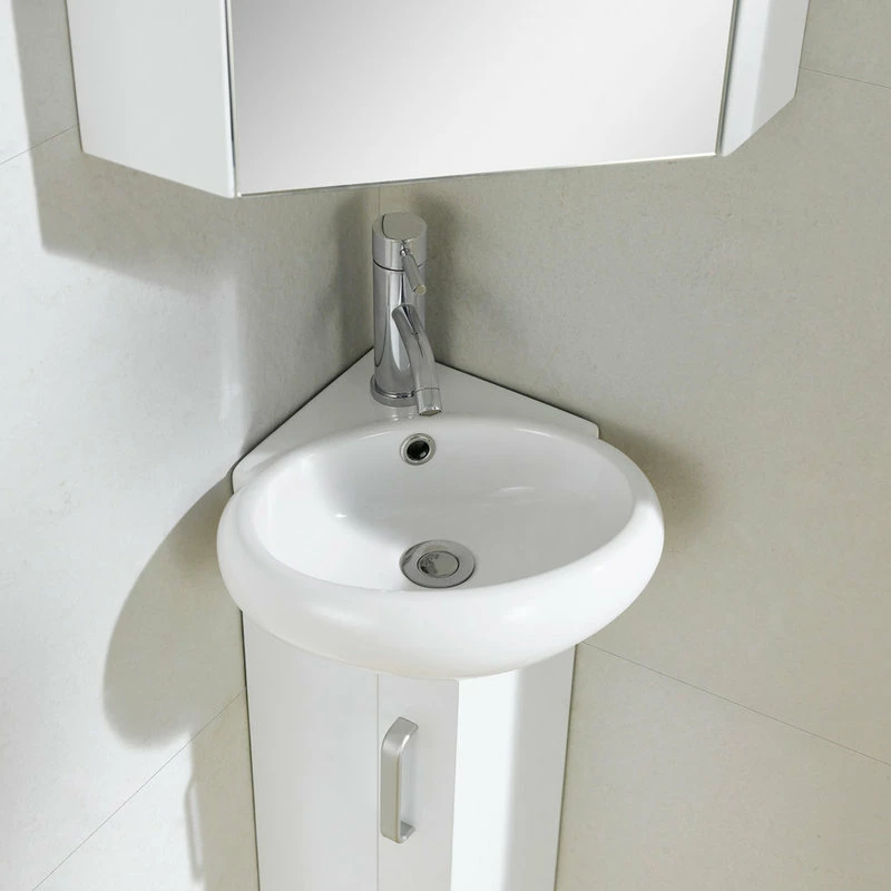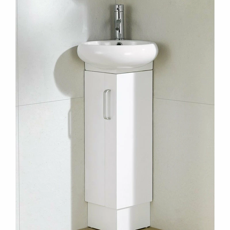 This unique space saving vanity designed specifically to fit into a corner, is made of plywood and adorned with satin nickel finish handles. The Milan vanity is available in three color choices. The Wenge and White Oak color options both feature a wood veneer face with a strong water resistant finish. And the White color option features a matte lacquer finish. The Milan corner sink is a grade AAA vitreous china.