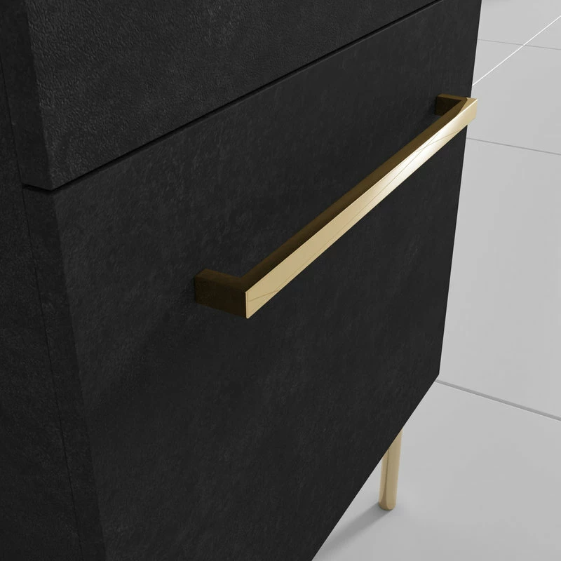 Concordia is slim and chic at its best, even in its 36 Inch double drawer orientation. We have perfected the vanity with great attention to space, detail, and simplicity, effectively embodying the minimal style profile while showcasing effective design from a barely-there standpoint. Hardware and legs have been sourced to coordinate via slim structure and heavy hold, maximizing durability in its most slender elements. We love the artsy vibe that utilizes space while conforming to just about any powder room layout.