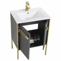 Be the first to review “Budget ๐ฏ Fine Fixtures Oakville Bath Vanity, Ceramic Sink, Onix Grey, 24 Inch, Satin Brass Hardware โ” Cancel reply
