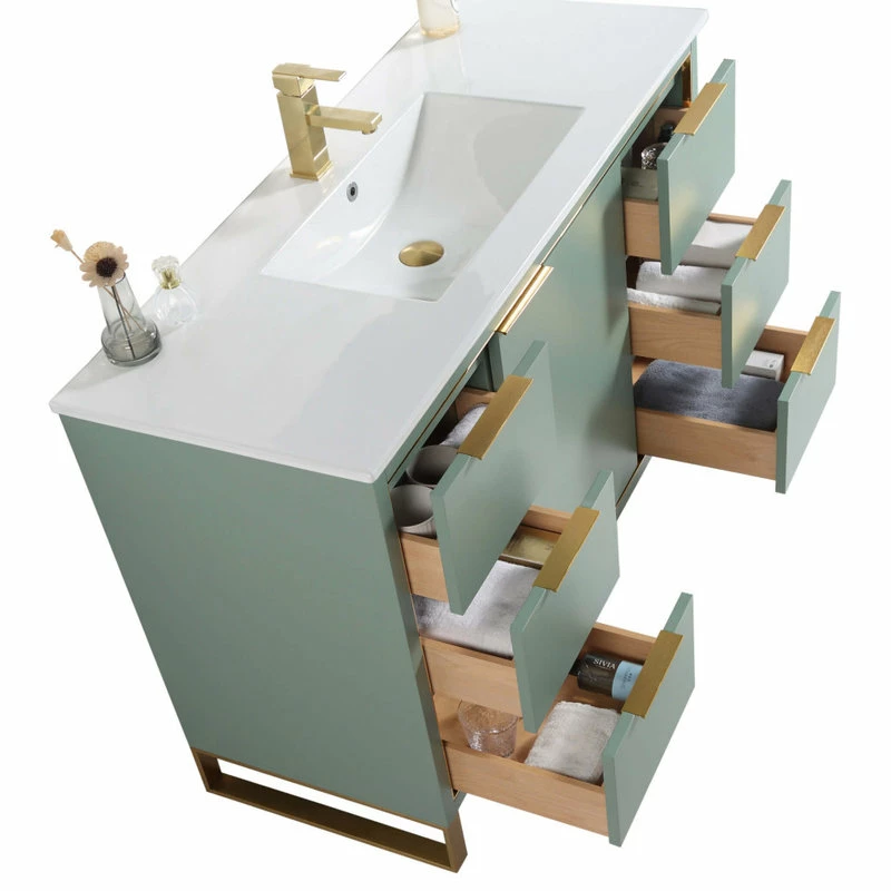 CONSTRUCTION- Constructed from high quality wood. Consists of durable plywood modeled to add beauty and elegance to any bathroom or vanity decor. Variety of many vanity cabinet color options; Choose your desired taste from Matte Black, Matte White, Mint Green, Navy Blue or Walnut. Fine Fixtures offers three different hardware finishes, Black, Chrome or Gold.