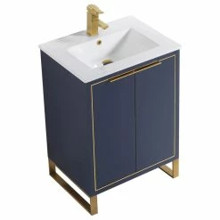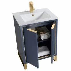 Be the first to review “Top 10 ⭐ Fine Fixtures Opulence Bath Vanity, White Ceramic Sink, Navy Blue, 24″, Satin Brass Hardware ✨” Cancel reply