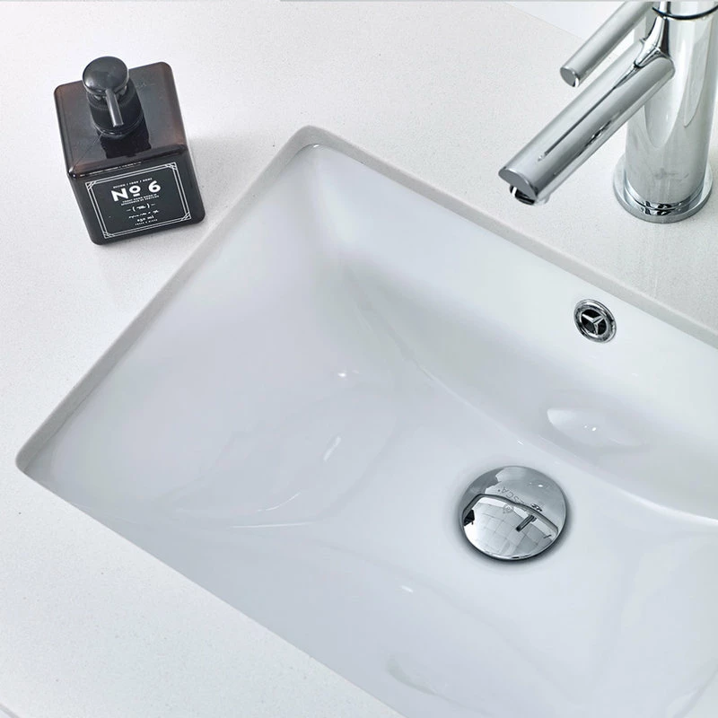 - Materials: Solid Wood Frame w/ MDF Panels, Quartz Stone Countertop w/ Backsplash, Ceramic Undermount Sink w/ Overflow
