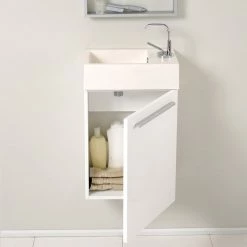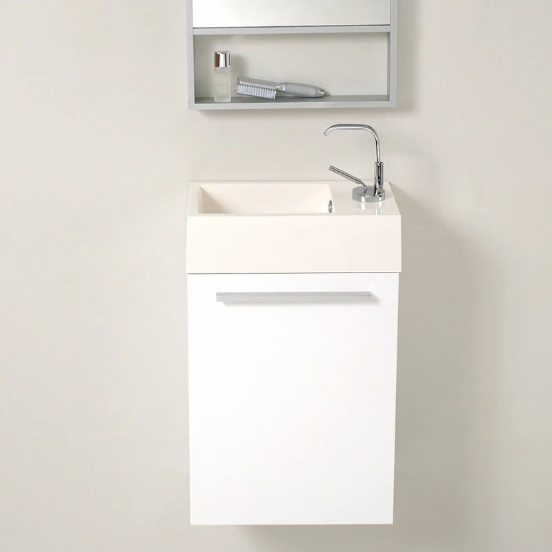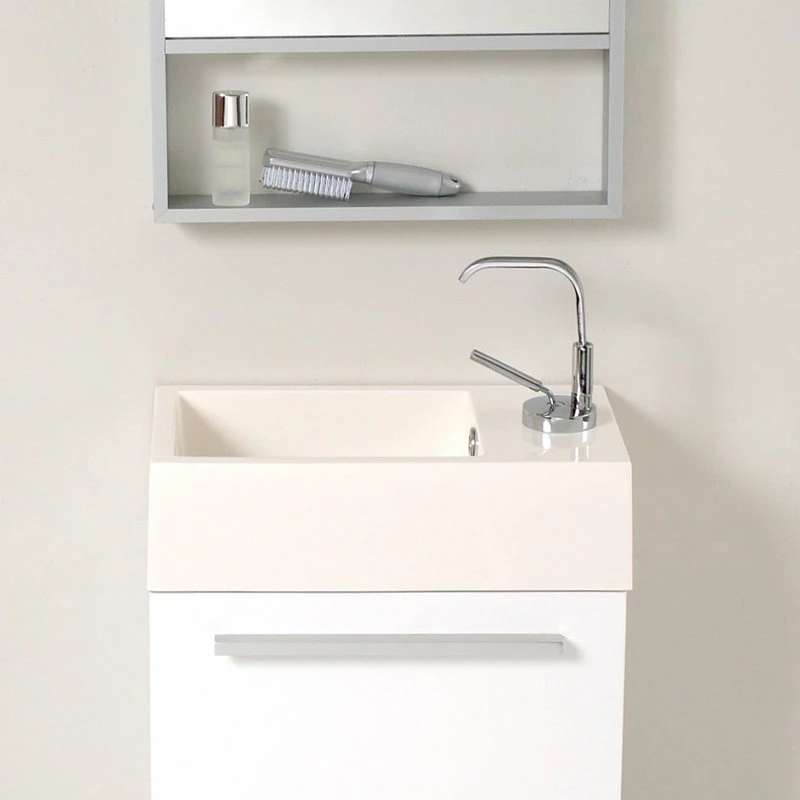 Innovative design and economical in size makes this ECO friendly vanity ideal for any smaller location, perfect for going “Green”. Available in various finishes ensures that regardless the color scheme at hand, anyone is sure to complete their space with guaranteed cutting contemporary chicness. Finally! A vanity ensemble that gets you in and gets you out into the world with style! Optional side cabinet is available.