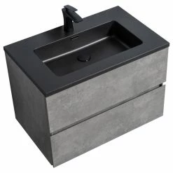 This black modern industrial styled cabinet made of MFC with deliberate designs of T shape hidden and 45″ invisible handle will become special and practical in your bathroom. The DTC soft-closing slide and the sound-deadening basin will help you create a silent using environment. Since the pieces are already assembled, after easy installation you will be able to enjoy your brand new vanity.Features:ENVIRONMENTALLY FRIENDLY HIGH-QUALITY MATERIAL- The bathroom vanity countertop integrated basin made by quartz sand which is one body Integrated molding, no water stain and easy to clean. Vanity material is MFC with a free painting plate E1 class which is good for health.MATTE BLACK QUARTZ SAND INTEGRATED SINK- Countertop basin surface covered by a nanometre black crystal particles which bring the sink a modern and crystal lustrous look. Its ultra-thin sink has a curved shape and efficiently prevents splashing. The well-functioning sink (WITHOUT FAUCET&POP UP & MIRROR) is easy to clean, scratch-resistant, and high-temperature resistant.LOW NOISE AND INVISIBLE HANDLE DRAWER- DTC soft-closing damping guide rail, noiseless while open or close. With 2 large drawers, both upper drawer lower drawer designed with 45″ beveled invisible handle which is more fit for fingers.U-SHAPED DRAINAGE PIPELINE ACCESS- George William Cabinetry’s Patented Design. ABS material ultra-thin u-shaped drainage pipeline access, offering more storage space while keeping a nice look.OVERSIZED STORAGE SPACE- Designed with 2-functioning drawers for you to put all the bath stuff. It will make your bathroom clean and tidy as well as save the space of your bathroom.Wall mounted vanity set with oversized storage cabinet and integrated basin.