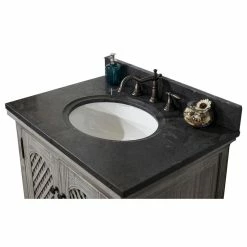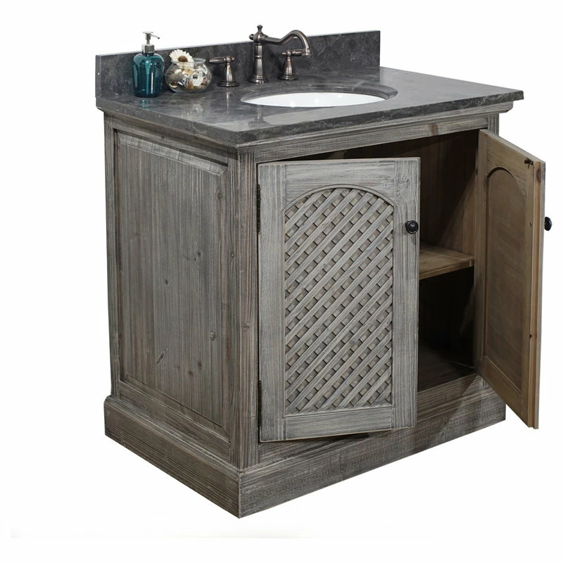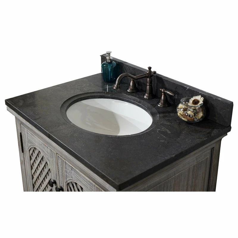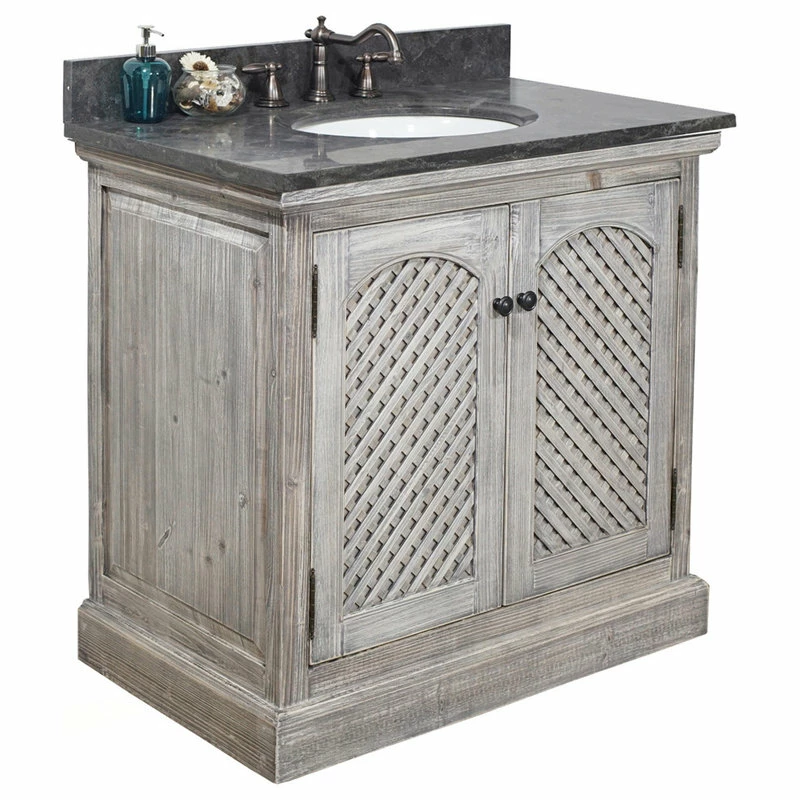 This rustic style bathroom vanity will be perfect for any bathroom. The distressed driftwood finishGives the vanity a unique style. Comes with a stone top and an under mounted ceramic sink.