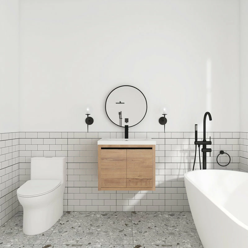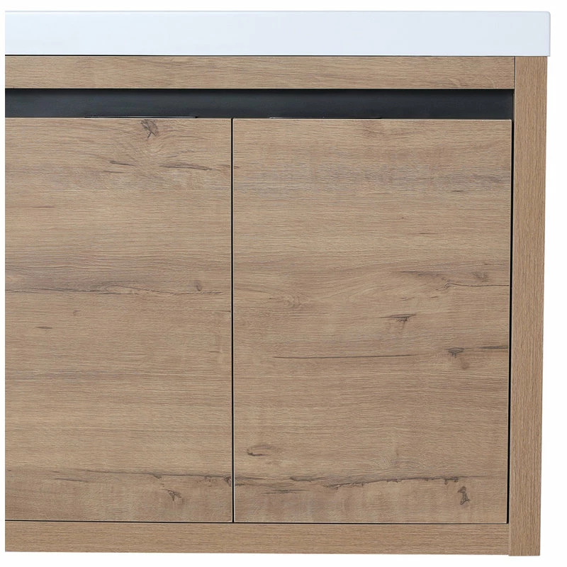 Our bathroom vanities have constructed High-Quality and Eco-Friendly plywood made of solid wood. Realistic wood grains are not only natural-looking but also smooth surfaces. That new your day and night in your bathroom using this bathroom vanity. Scratch & Water-Resistant you do not concern with the bathroom’s wet environment because of the waterproof finish. 1.8cm thickness of plywood makes the bathroom furniture base more durable. Melamine surface, which is easy to clean and easy to take care of it. Easy clean, and grand with the integrated sink made of premium material. Easy Plumbing Installation, Only two soft-close doors make the plumbing installation easier. Soft close hinges to avoid the noise. The hinges were tested more than 1000000 times to ensure daily use. The lines and shapes of the products bring us enjoyment that ceramic countertops or stone countertops can not provide. Features an overflow hole that prevents water leaks and spills. We have predrilled a single faucet hole for your convenience- the faucet is not included.