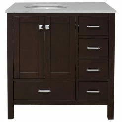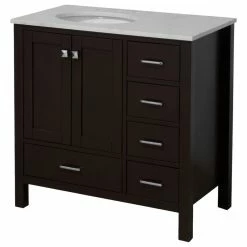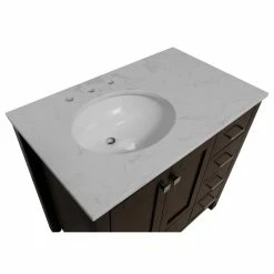 - Engineered Carrara top with beautiful veining designed to resemble authentic Carrara marble. Please note that like natural marble, the color and/or pattern of each countertop may vary from the pictures.