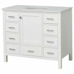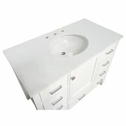 - Countertop is durable and low-maintenance, making this vanity suitable for powder rooms, kids bathrooms, and rental properties. Just wipe clean with gentle household cleaners – no sealing required.