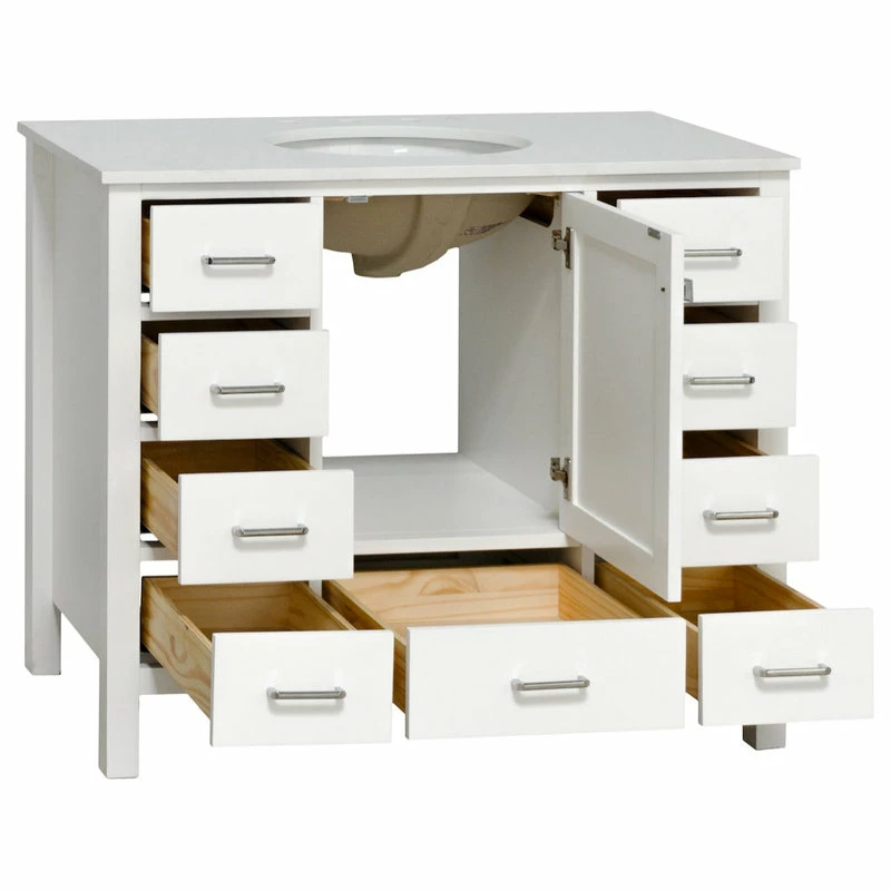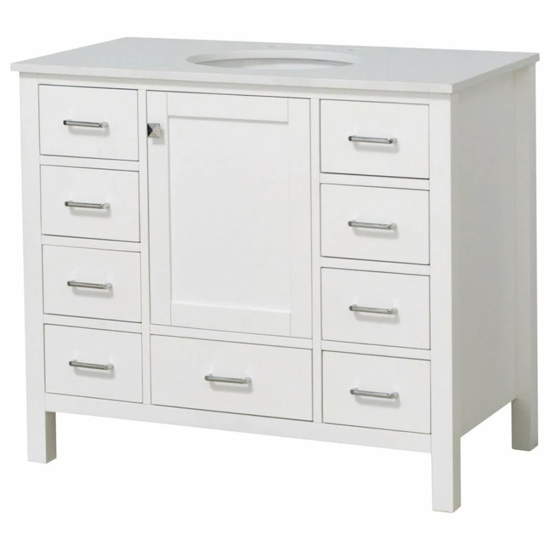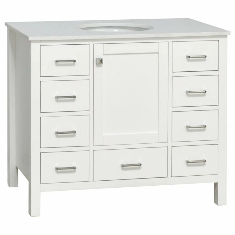 - Countertop is pre-drilled for one 8″ widespread 2-handle faucet (not included)