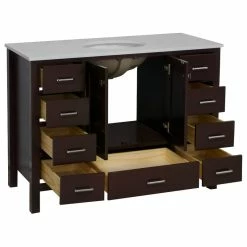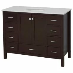 - Countertop is durable and low-maintenance, making this vanity suitable for powder rooms, kids bathrooms, and rental properties. Just wipe clean with gentle household cleaners – no sealing required.
