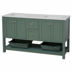 - Countertop is durable and low-maintenance, making this vanity suitable for powder rooms, kids bathrooms, and rental properties. Just wipe clean with gentle household cleaners – no sealing required.
