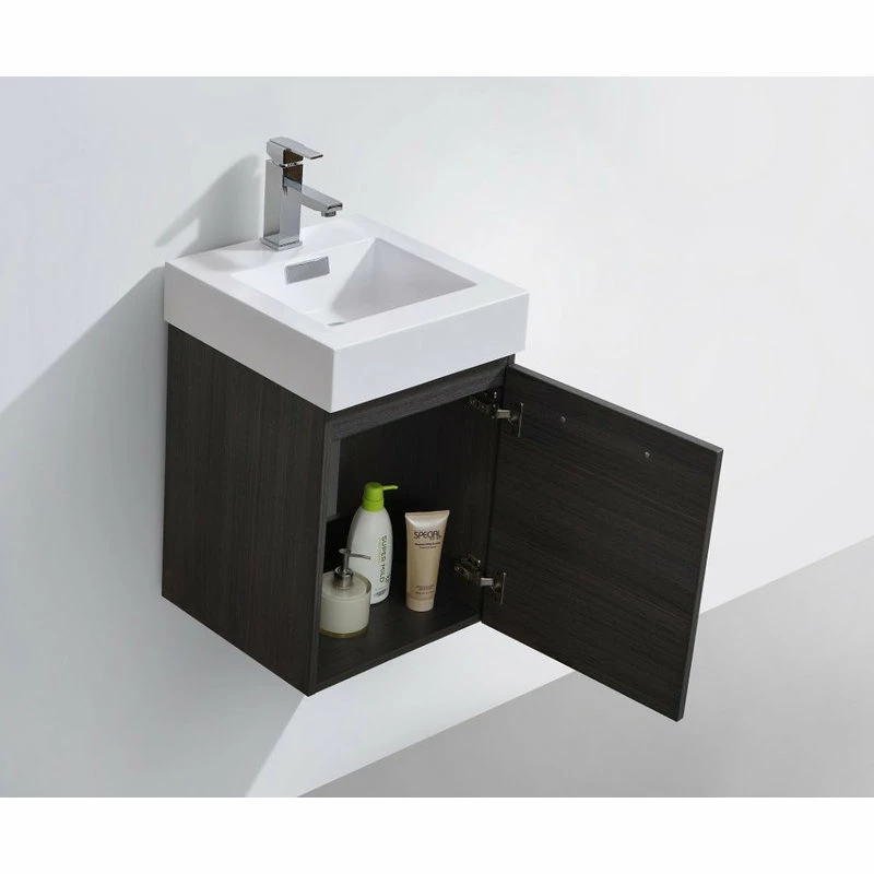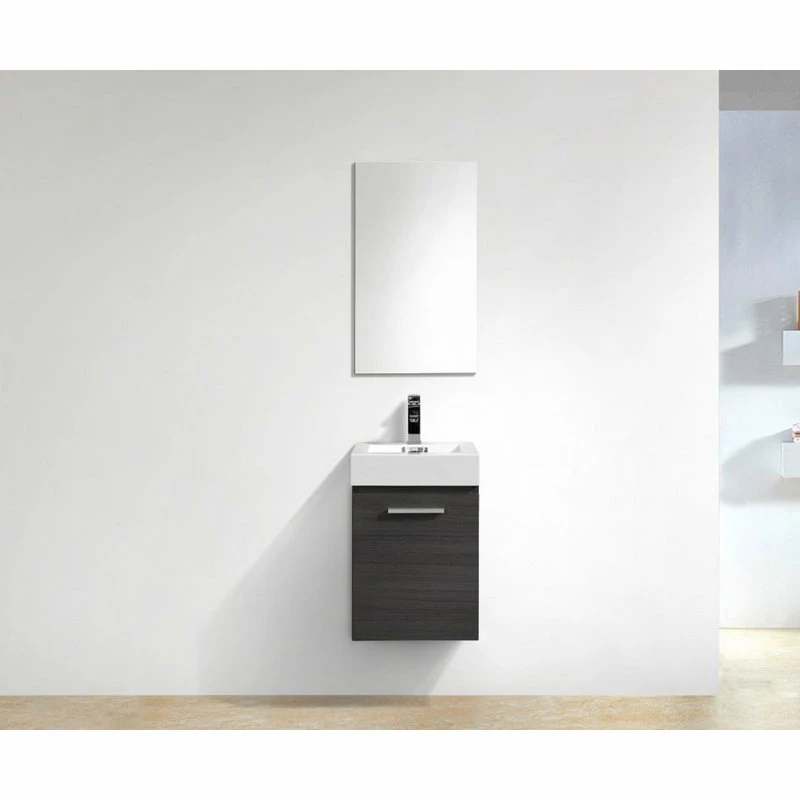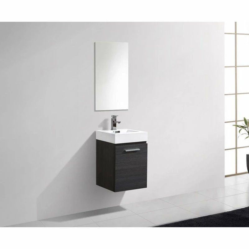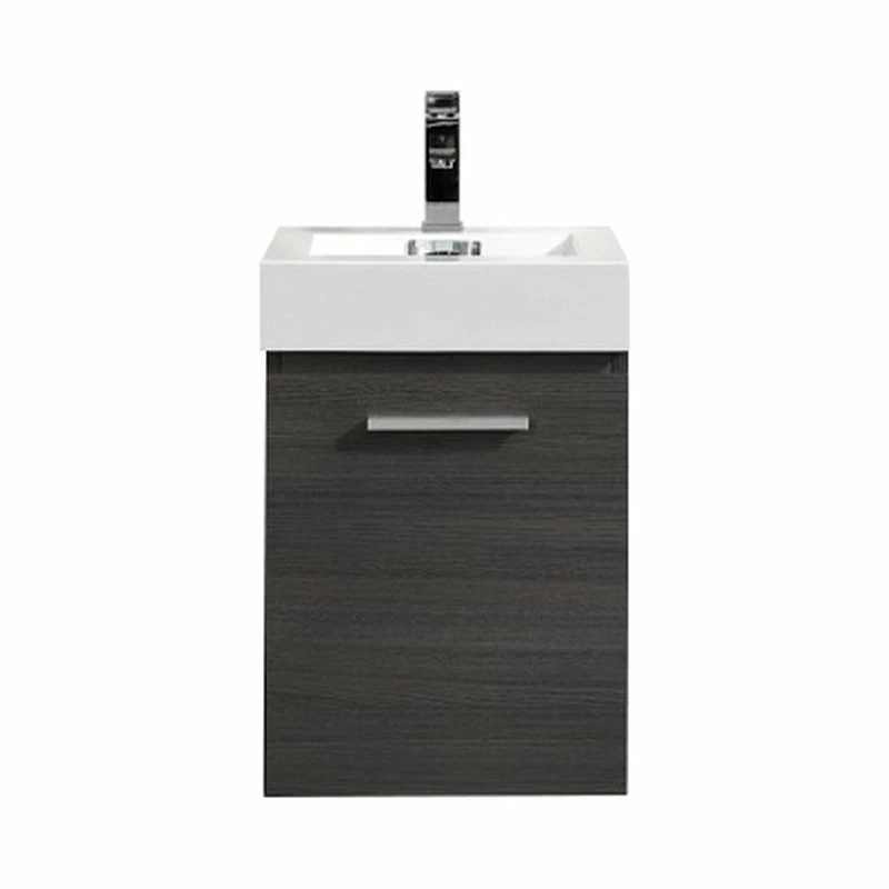Innovative design and economical in size makes this vanity ideal for any smaller location. Available in various finishes ensures that regardless the color scheme at hand, anyone is sure to complete their space with guaranteed cutting contemporary chicness. This 16 Inch model comes with a reinforced Acrylic sink, Wood Veneer Constructed Console with high quality European Hardware, that provides smooth soft-closing operation.
