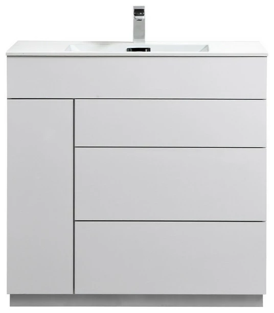 Milano 36″ High Glossy White Modern Bathroom Vanity