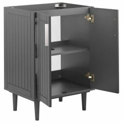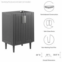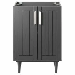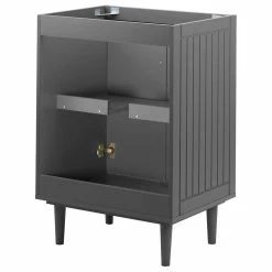 Embrace the subtle sleekness of the Augusta 24″ Bathroom Vanity Cabinet. Augusta features crisp lines and a stately design that seamlessly updates your bathroom decor. Solidly constructed from wood and MDF particleboard, the Augusta Vanity sits on four tapered legs and provides hidden storage shelves behind soft-close doors. The Augusta Bathroom Vanity aligns style with function for a modern bathroom. Augusta comes with non-marking foot caps to protect flooring. Assembly required. Sink basin and fixtures not included.