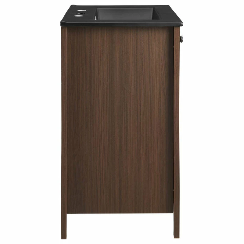 Embrace the subtle sleekness of the Nantucket Bathroom Vanity. Nantucket features crisp lines and a stately design that seamlessly updates your bathroom decor. Solidly constructed from wood and MDF particleboard, the Nantucket Vanity sits on four tapered legs and provides hidden dual storage shelves with soft-close doors. Featuring a curved basin and 8-inch centerset faucet holes, the Nantucket Bathroom Vanity aligns style with function for a modern bathroom. Nantucket comes with non-marking foot caps to protect flooring. Assembly required, fixtures not included.