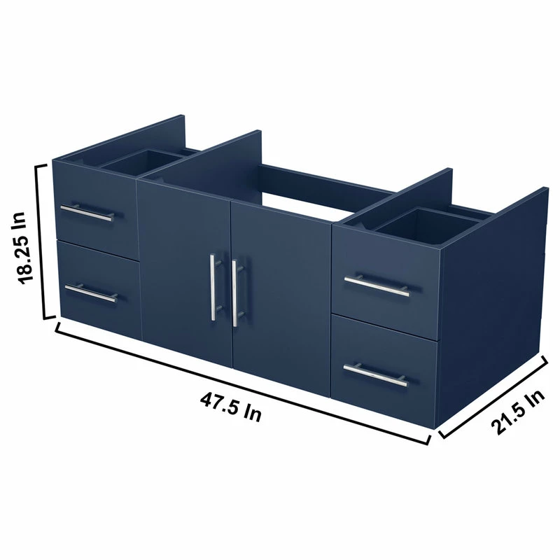 - Cabinet dimensions are 47.5 in. W x 21.5 in D x 18.25 in. H. Full set dimensions are 48.25 in. W x 22 in. D x 19 in. H.