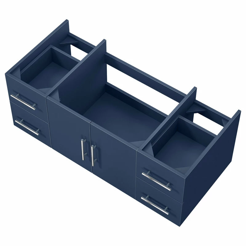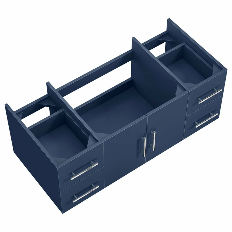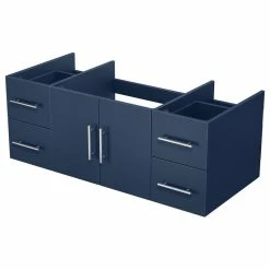 - Sleek bathroom vanity available in a variety of finishes, including White, Dark Grey, and Navy Blue, with brushed nickel hardware included
