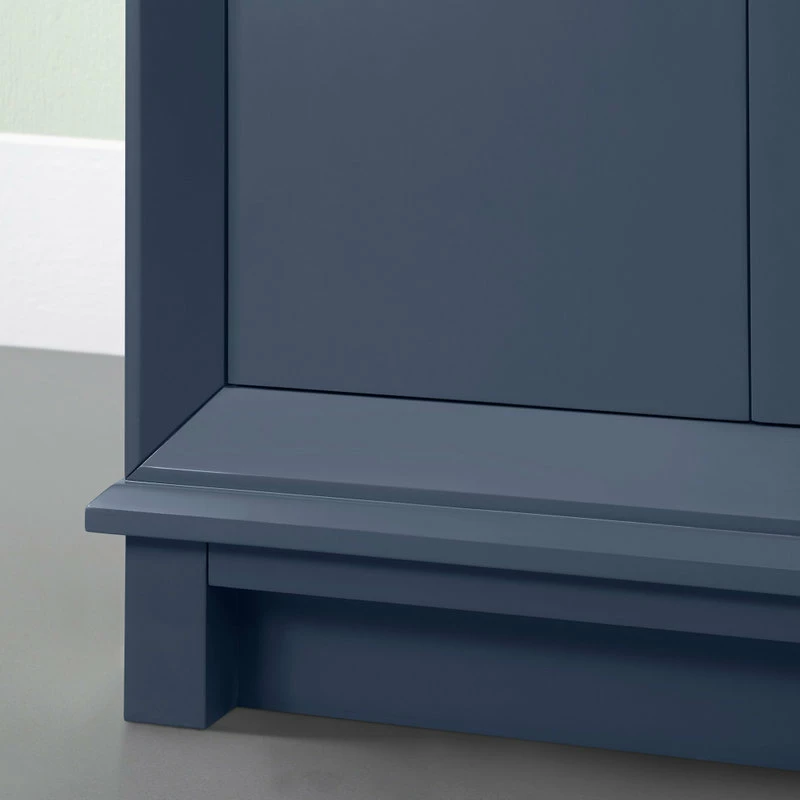 - Two soft-closing doors with a fully extendable sliding shelf with power bar to organize toiletries and charge devices, one tilt-down top drawer to store small items and four functional drawers.