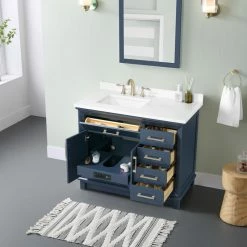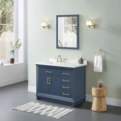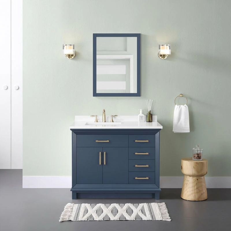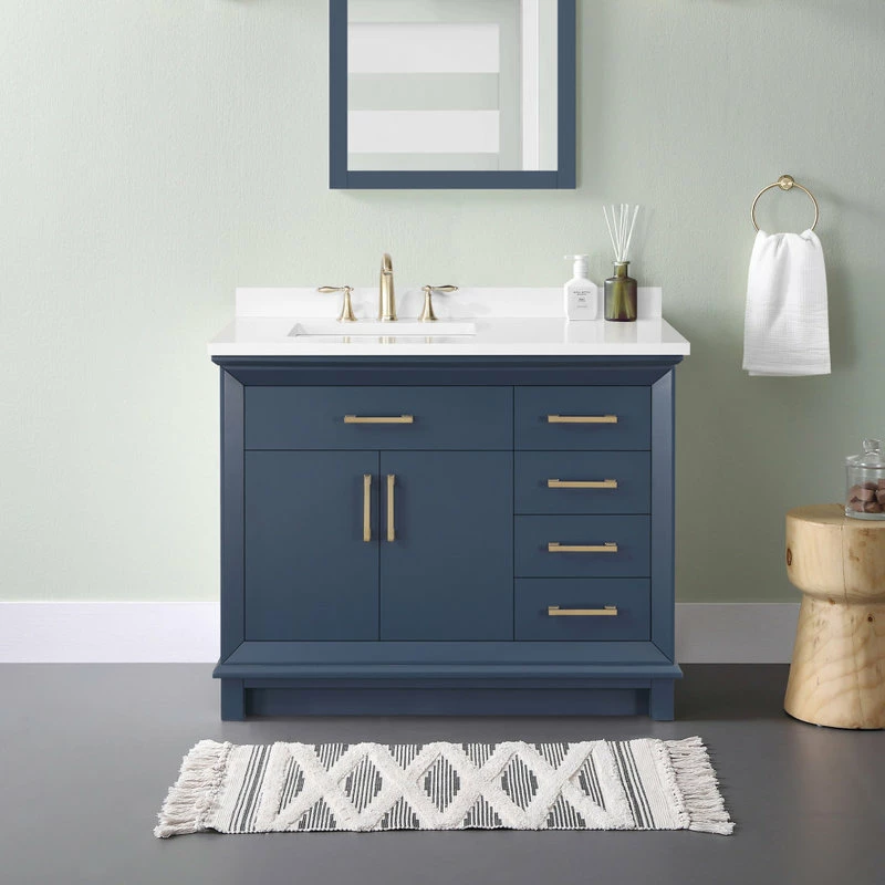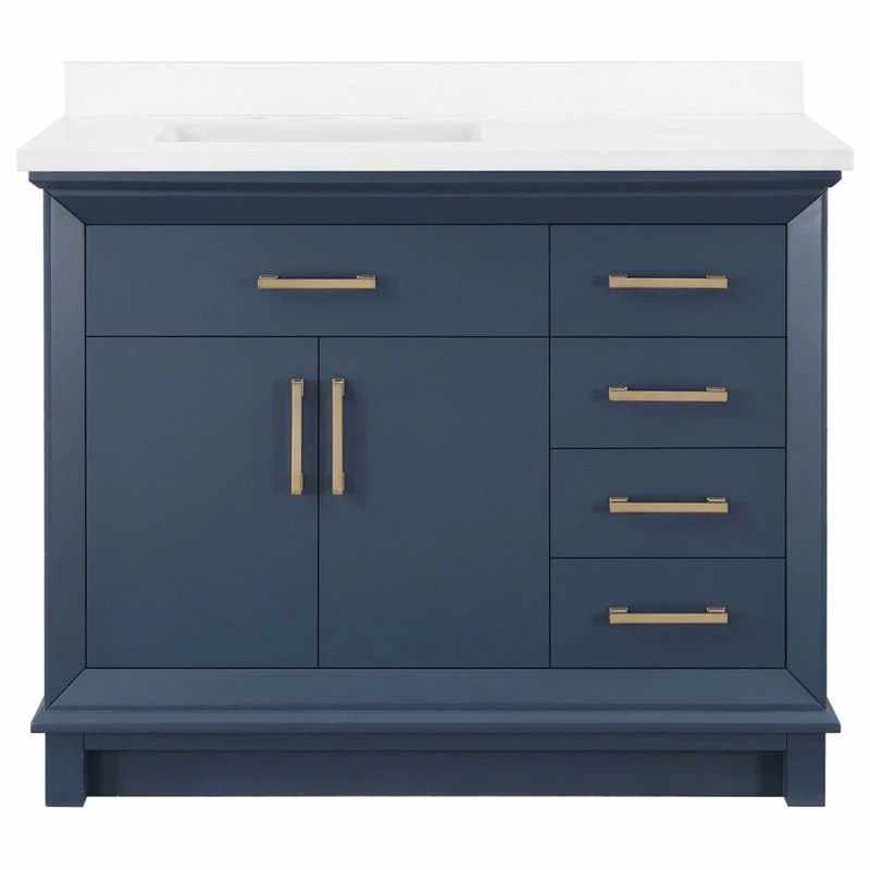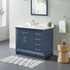 - Ove Decors Churchill 42-in Midnight Blue Undermount Single Sink Bathroom Vanity with White Engineered Marble Countertop for a sleek transitional design