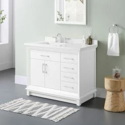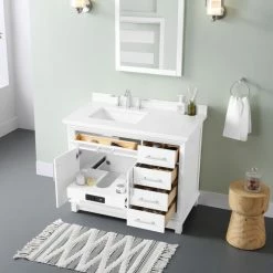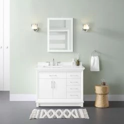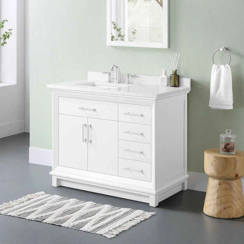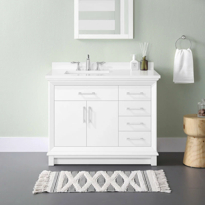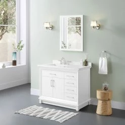 - Ove Decors Churchill 42-in Pure White Undermount Single Sink Bathroom Vanity with White Engineered Marble Countertop for a sleek transitional design