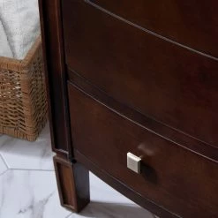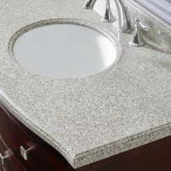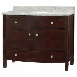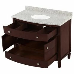 Give your bathroom an elegant update using the Georgia Vanity. This sophisticated vanity is made from tobacco-finished wood with a gray speckled granite countertop and backsplash. Its soft-close drawers and cabinet provide ample storage space for your toiletries and bathroom essentials.