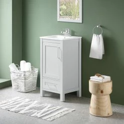 - 18-in W x 16-in D vanity is ideal for half baths and smaller spaces