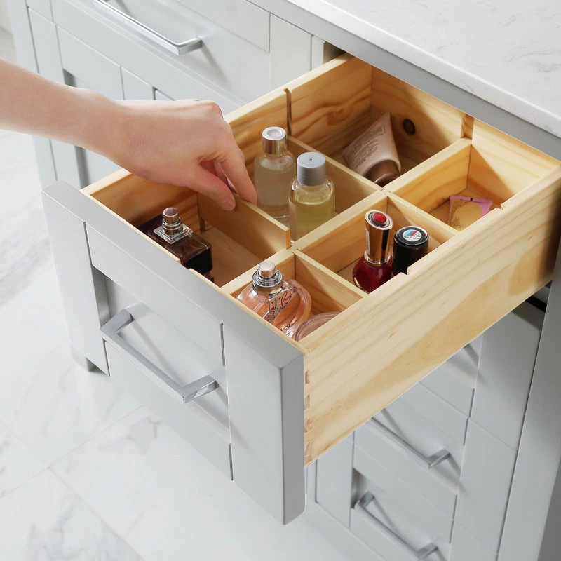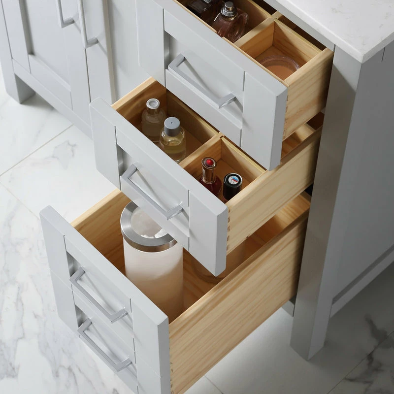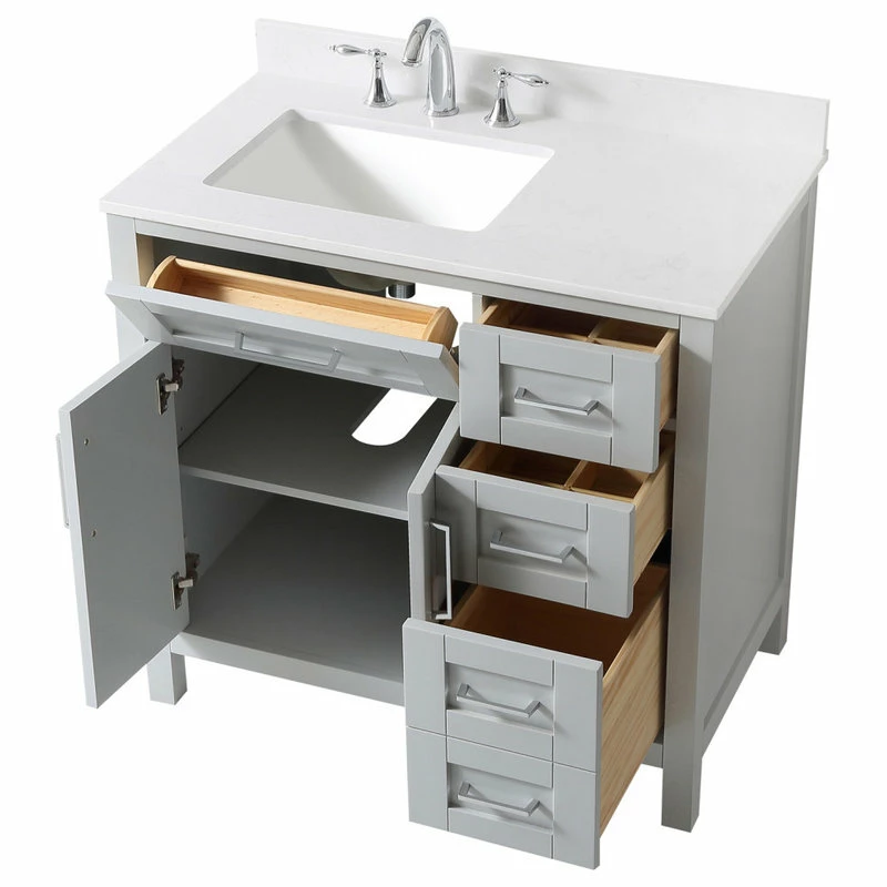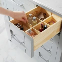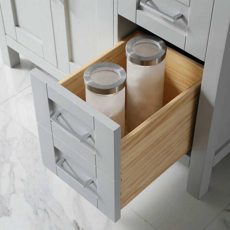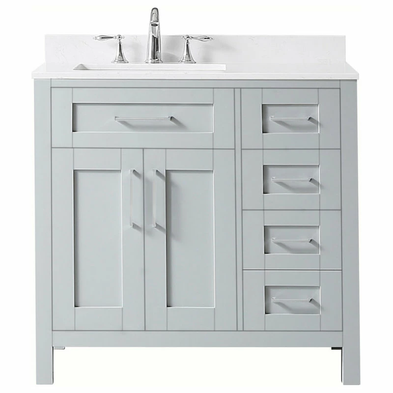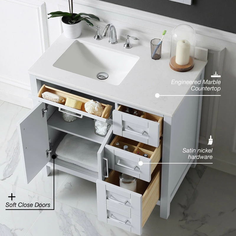The Tahoe 36 in. vanity is perfect for those looking to have a little extra. Attention to detail and functionality are what really make this piece special. From drawers featuring built-in organizers to a tilt-down front drawer, we made sure to utilize every inch of storage space. The Tahoe is appropriately complimented by modern satin pulls and soft-close hinges and drawer glides. In addition, a large 20 in. under mount ceramic sink topped with lavish Yves marble top for a truly astonishing overall effect and plenty of room to groom.