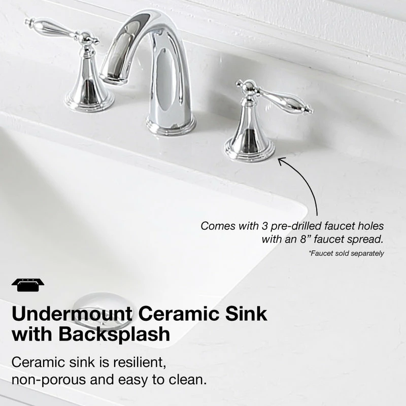 Promo 💯 Vinnova Sevilla Vanity With White Composite Stone Top, Washed Ash, 48″, Without Mirror 😀