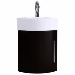 Item 21959 MYRTLE 16.5″ SMALL CORNER BATHROOM VANITY SINK BLACK FINISH CABINET