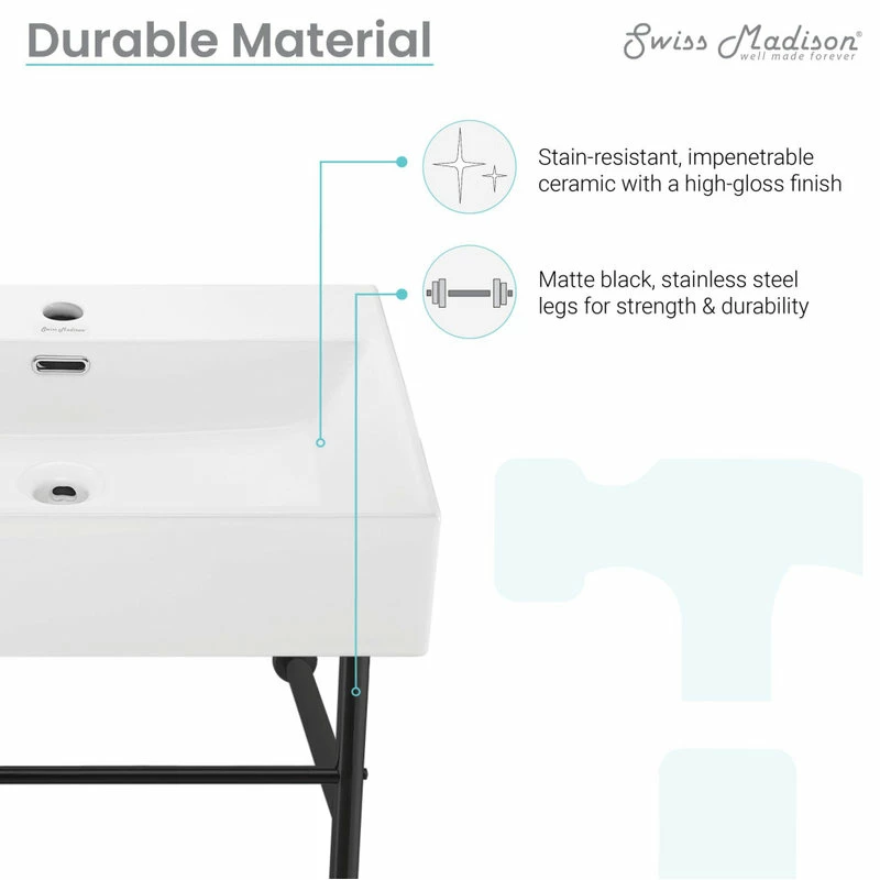 - Glossy porcelain finish makes the sink easy to clean and elegant to the eye