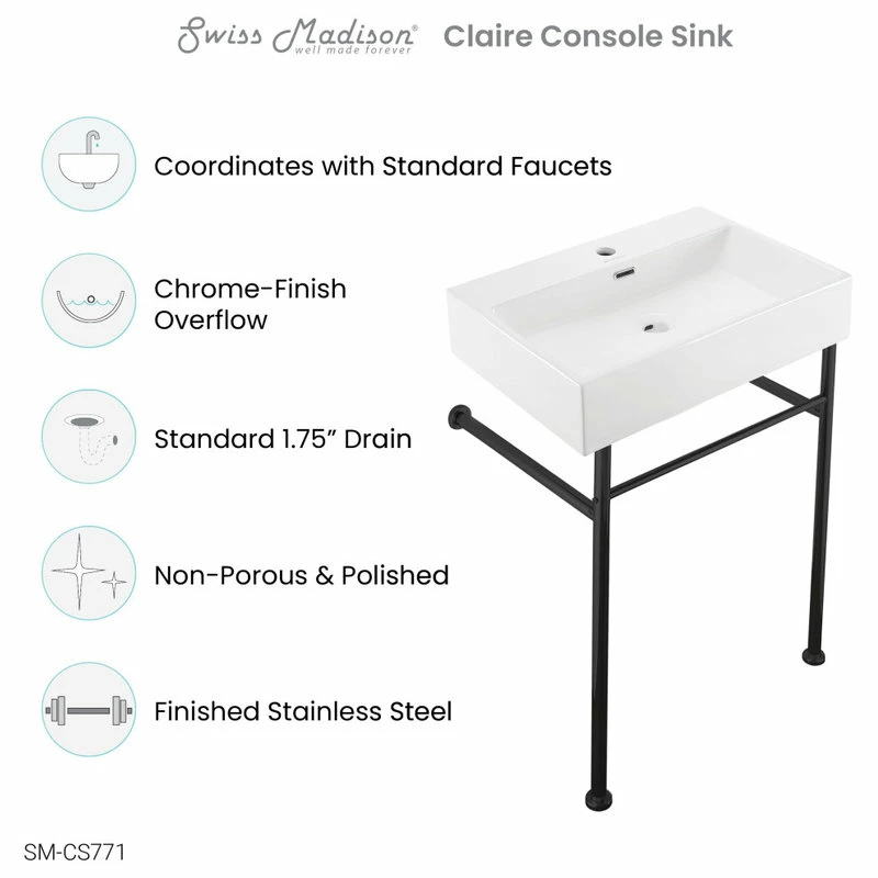The Claire console sink ushers in your guests with a powerful and bright character. The widened washbasin offers increased ease of access. An open design makes the room appear more spacious and candid.