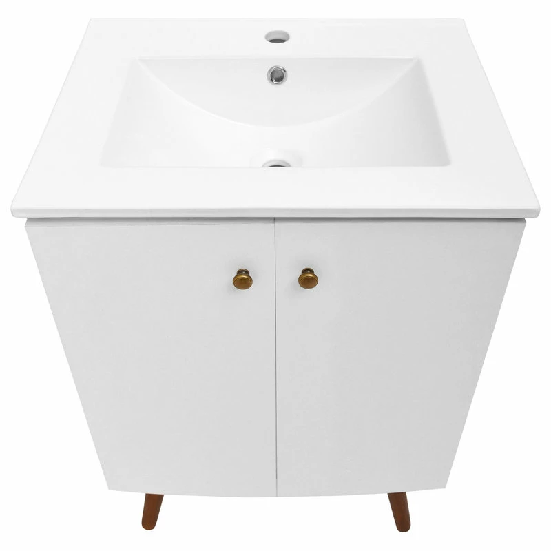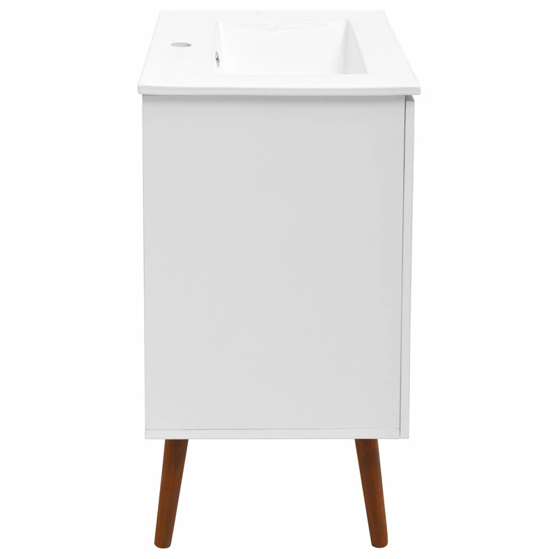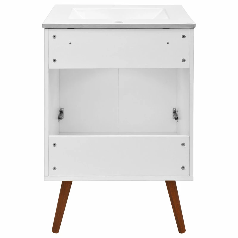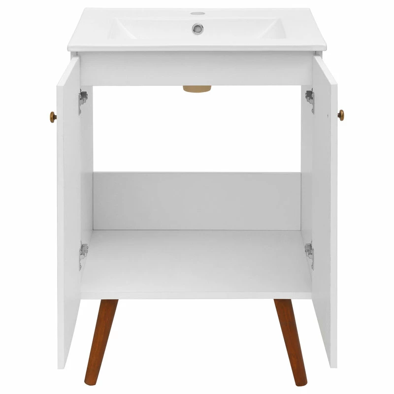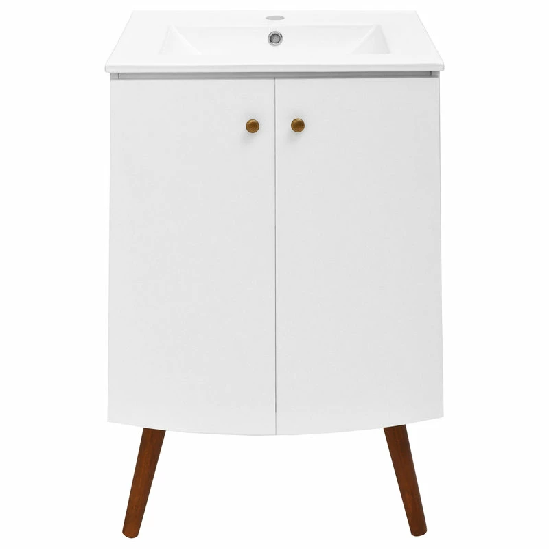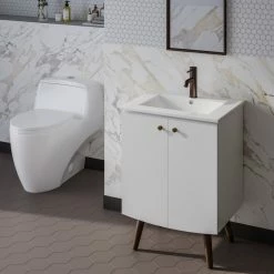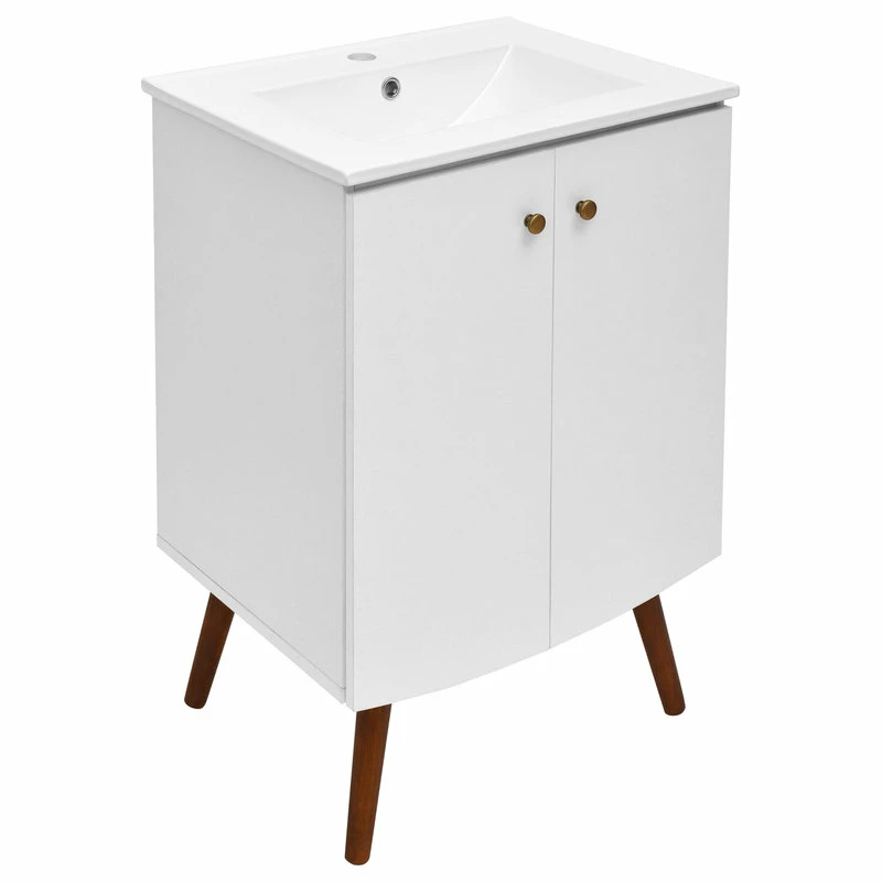 The Manoir Bathroom Vanity has a sleek, mid century look designed to elevate any bathroom setting. This vanity’s compact design features one soft, slow closing door for ease-of-use and to help maximize storage space. This sturdy and easy-to-install design complements a multitude of bathrooms and can be paired with any Swiss Madison Faucet.