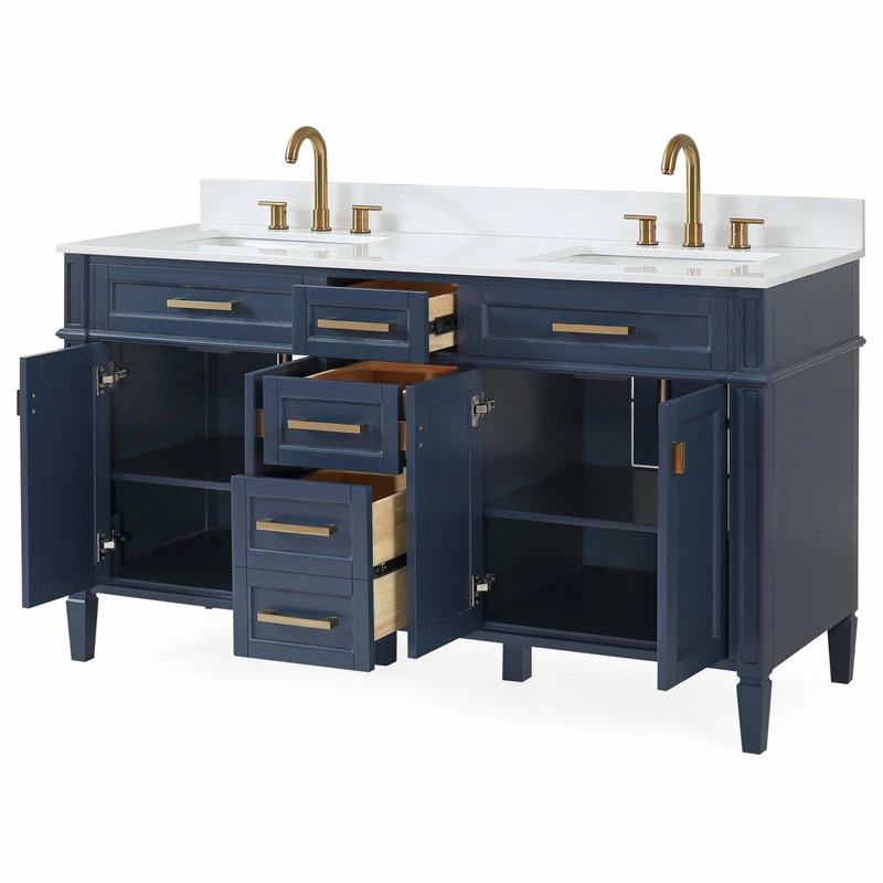 Tennant Brand features an elegant and simplicity bathroom sink vanity: Durand. This bathroom vanity is focused on design and functionality. It’s a perfect piece to enhance modern or contemporary bathroom settings. This vanity is made of the finest select birch solids, high-end furniture-grade construction, made with 100% solid wood and plywood only. White quartz countertops add elegance to the piece, all drawers are rubberwood with dovetail joints, soft closing mechanism. Two good sized drawers provide plenty of storage space for towels or other necessities.