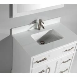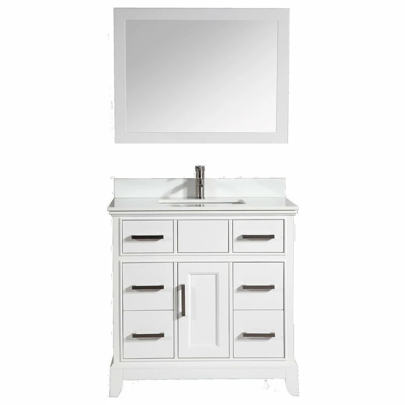 - Includes mirror, countertop, sink basin, cabinet hardware and backsplash