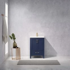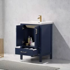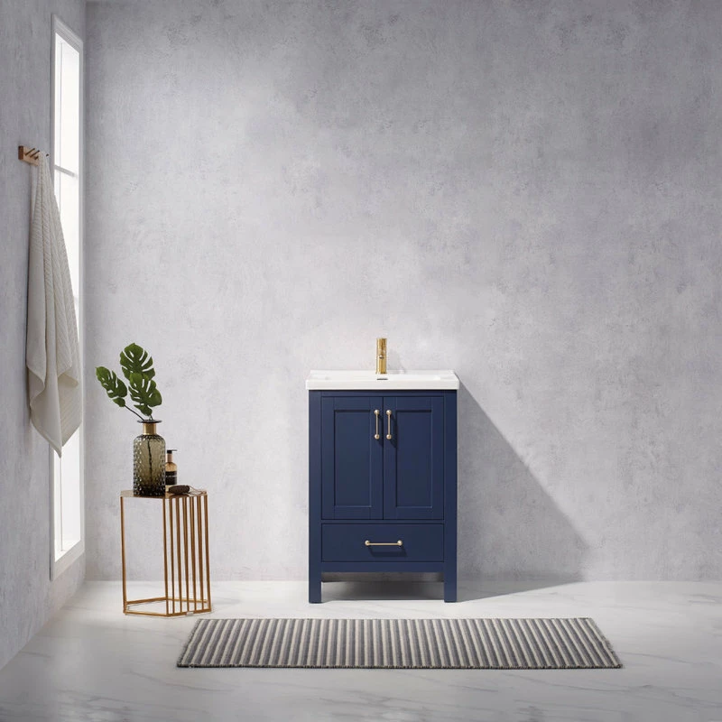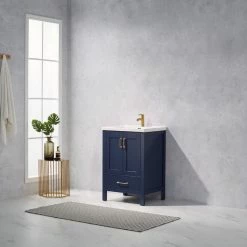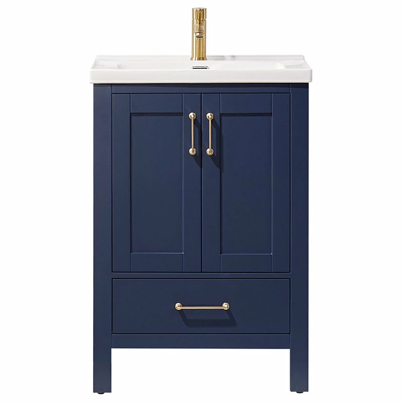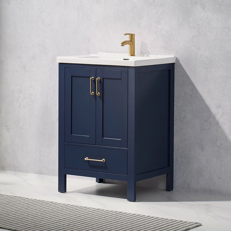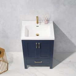 A perfect complement to a contemporary space, the Vinnova Gela Vanity combines the clean, sharp lines of modern design with modern furniture styling. The integrated ceramic vanity top provides a dramatic contrast with the cabinet. Simple, bar-style pulls and knobs adorn the spacious drawers and doors, which conceal ample storage space for all your bathroom accoutrements.