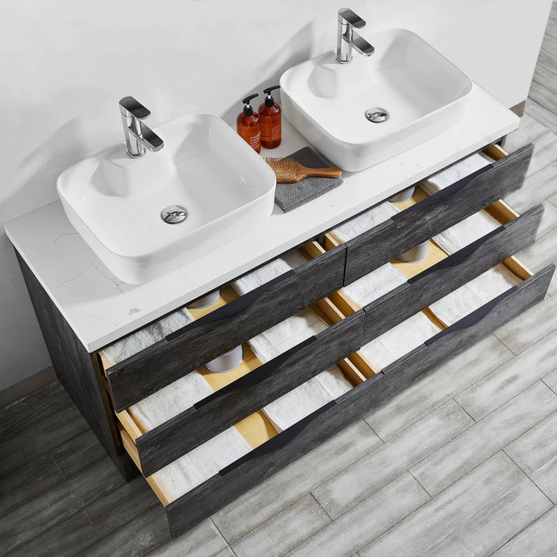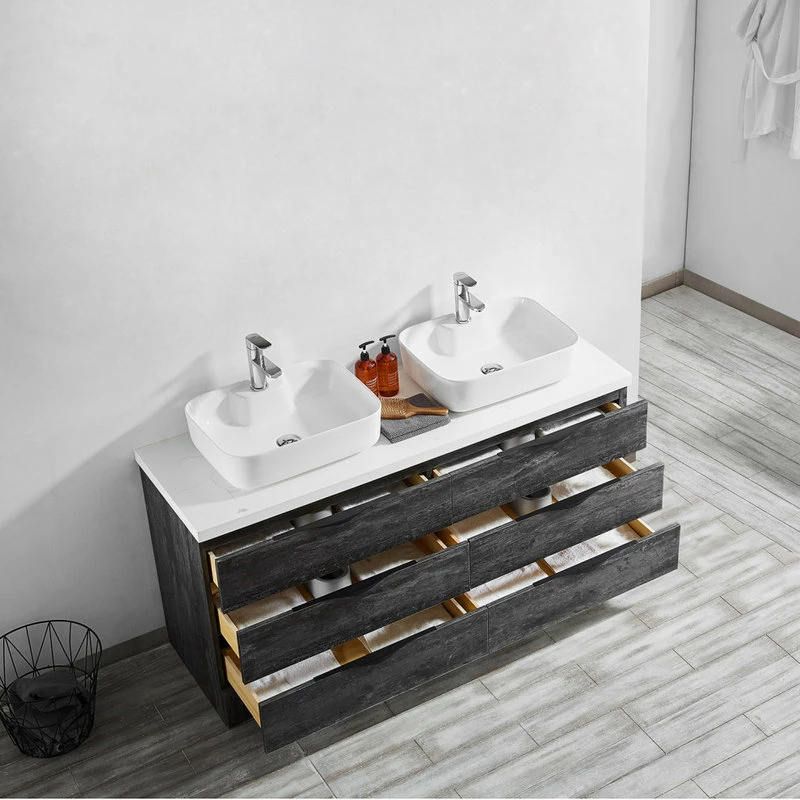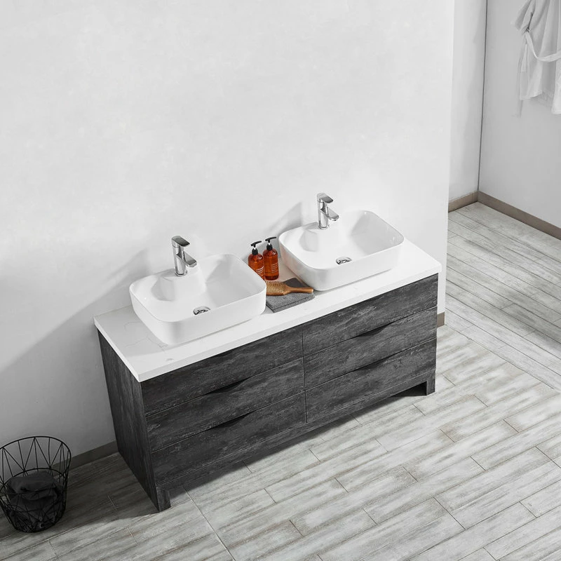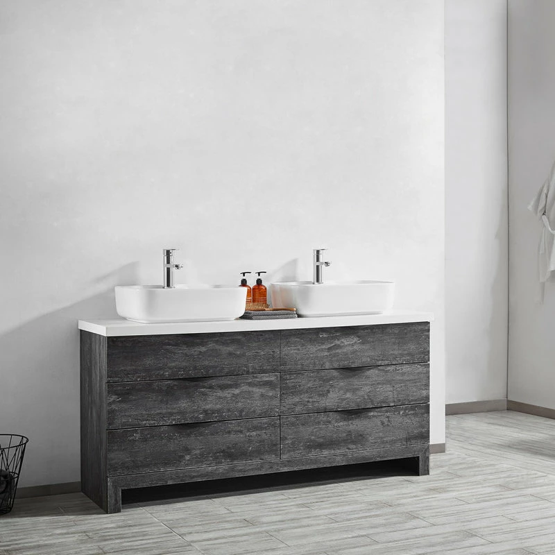 Want to make a style statement in your bathroom without breaking your budget? The Spencer Vanity by Vinnova brings contemporary chic to any space, featuring an elegant suede-grey finish contrasted with a crisp white countertop. Three expansive drawers provide generous room for towels and other accoutrements.
