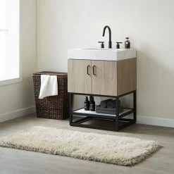 Cheap ๐ฅ JimsMaison Telllara Freestanding Single Bathroom Vanity Set, Plaid Grey Oak, 24 In. ๐