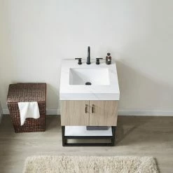 Be the first to review “Best Pirce ๐งจ Vinnova Toledo Vanity, White Stone Sink Top, Light Walnut, 24″, Without Mirror ๐” Cancel reply