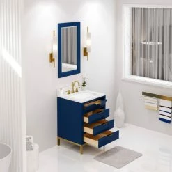 New 🎉 Blossom Kitchen & Bath Supply Geneva Vanity With Ceramic Sink, Navy Blue, 24″ 😀