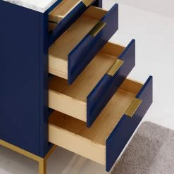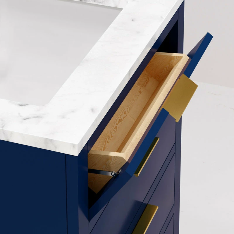 Breathe new life into your bathroom with our Bristol collection bathroom vanity. Its bold proportions and sleek scale bring a positive vibe to any spaces. Solid wood construction provides lasting quality, while the Italian Carrara white marble top keeps your bath design lustrous and neat. Dovetail soft-closing drawers offer spacious storage for everyday essentials. Distinctive top drawer(s) engage with flip-out front design which enhances the form and function. Incorporate sleek metal hardware with clean straight lines into the formula, it absolutely brings marvelous sophistication to the design. Embracing a transitional aesthetic with top-quality stainless-steel base, the Bristol collection is the perfect addition to revitalize your bathroom every day.