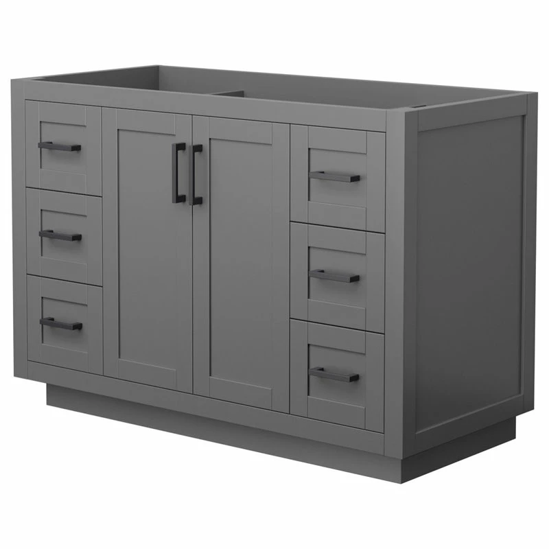 Sleek and chic are the best words to describe this European shaker vanity, a piece that bridges modern and contemporary. The Miranda vanity is manufactured in high quality durable materials and finished to the exacting standards you’ve come to expect from the Wyndham Collection. With function as important as form, the elegant design focuses on ample storage and counter space, a choice of three different handle colors, and 3D adjustable soft-close doors and dovetail drawers. Manufacturing Model #: WCF292948SGBCXSXXMXX