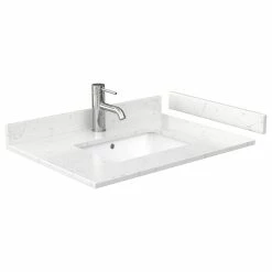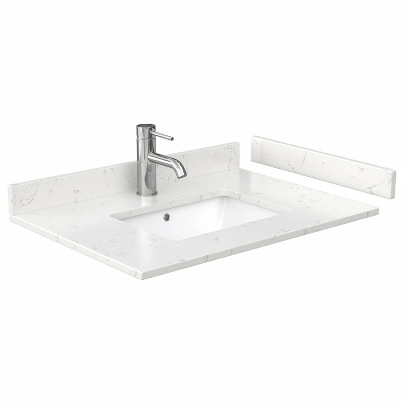 - Countertop with porcelain undermount square sink(s) is drilled for single-hole faucet mounts. Faucet(s) not included