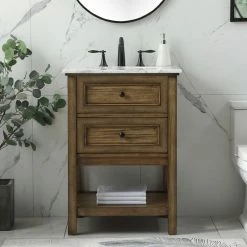 Cheapest 🎁 Elegant Furniture & Lighting 22″ Transitional Driftwood-Light Bathroom Vanity 💯